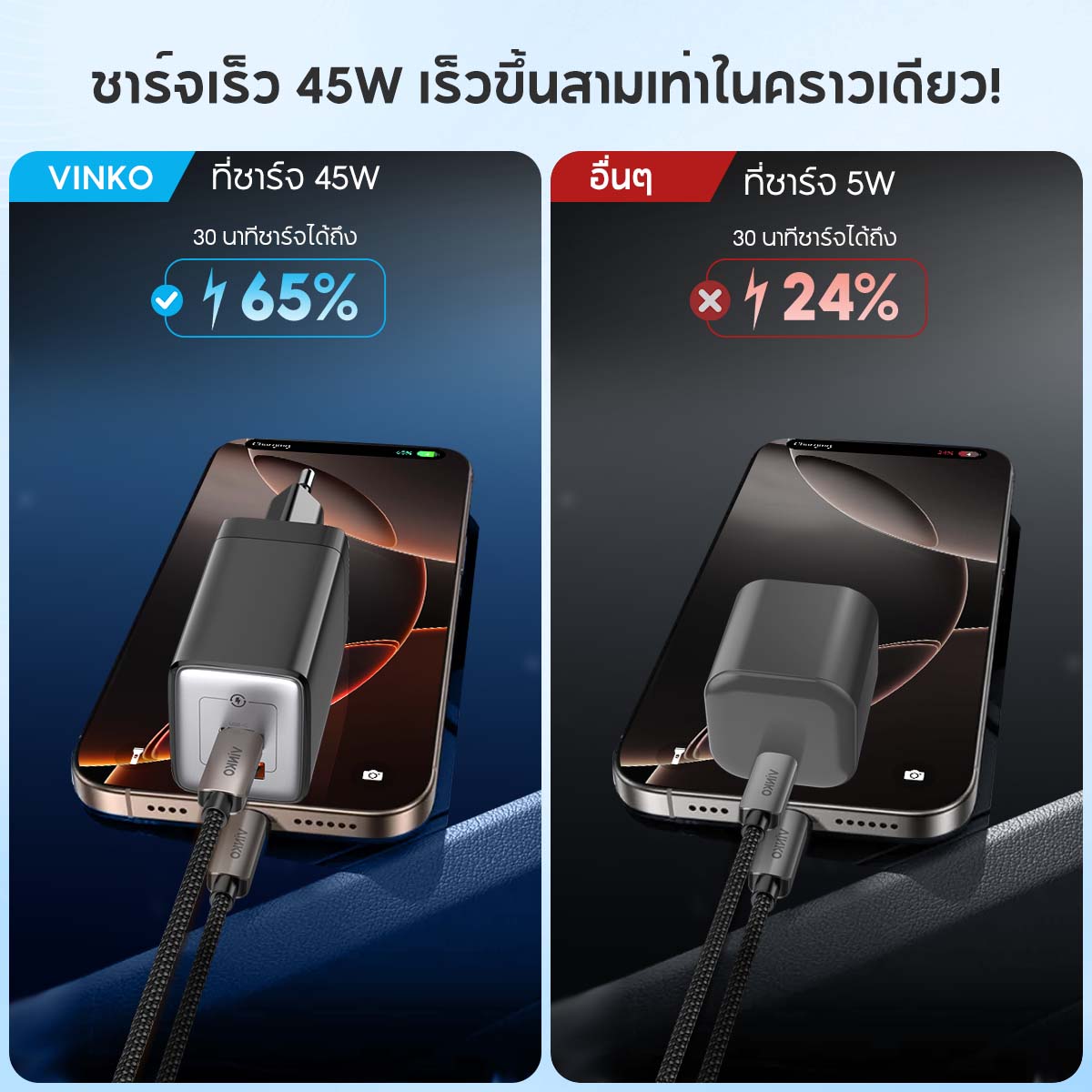 ⚡ ️ VINKO GaN 45W ปลั๊กชาร์จ ขนาดเล็กเร็วเท่าสายฟ้า!